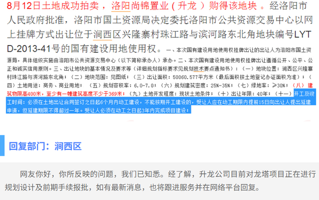 然而工程进展始终缓慢。早在2015年,就有市民询问项目为何未见实质动工,当时得到的回应是设计规划与报批手续仍在推进。到了2016年,因城市规划调整,考虑到周边交通、景观与配套等因素,该地块被确定为绿地公园范围,不再建设超高层建筑。加之业内传闻的开发商资金问题、后期限高等政策影响,多重现实因素交织,导致龙塔最终停留在蓝图阶段。