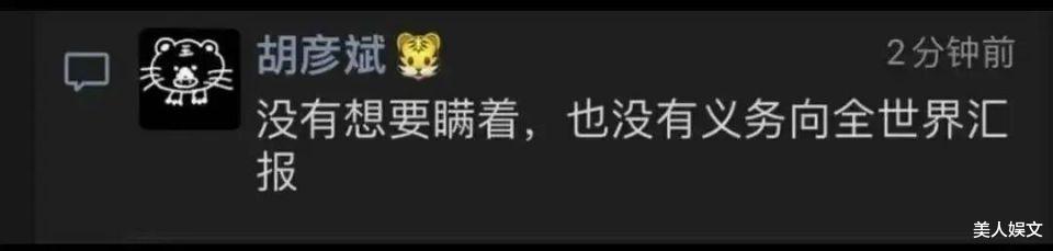 11 月 22 日凌晨,胡彦斌在粉丝专属微信群及个人朋友圈同步发文回应争议,内容呈现明显的矛盾感:一方面表示 “感情是私事,没有想要瞒着,但也没有义务向全世界汇报每一个细节”,另一方面又向粉丝道歉 “这段时间让你们承受了很多不必要的攻击,对不起”。