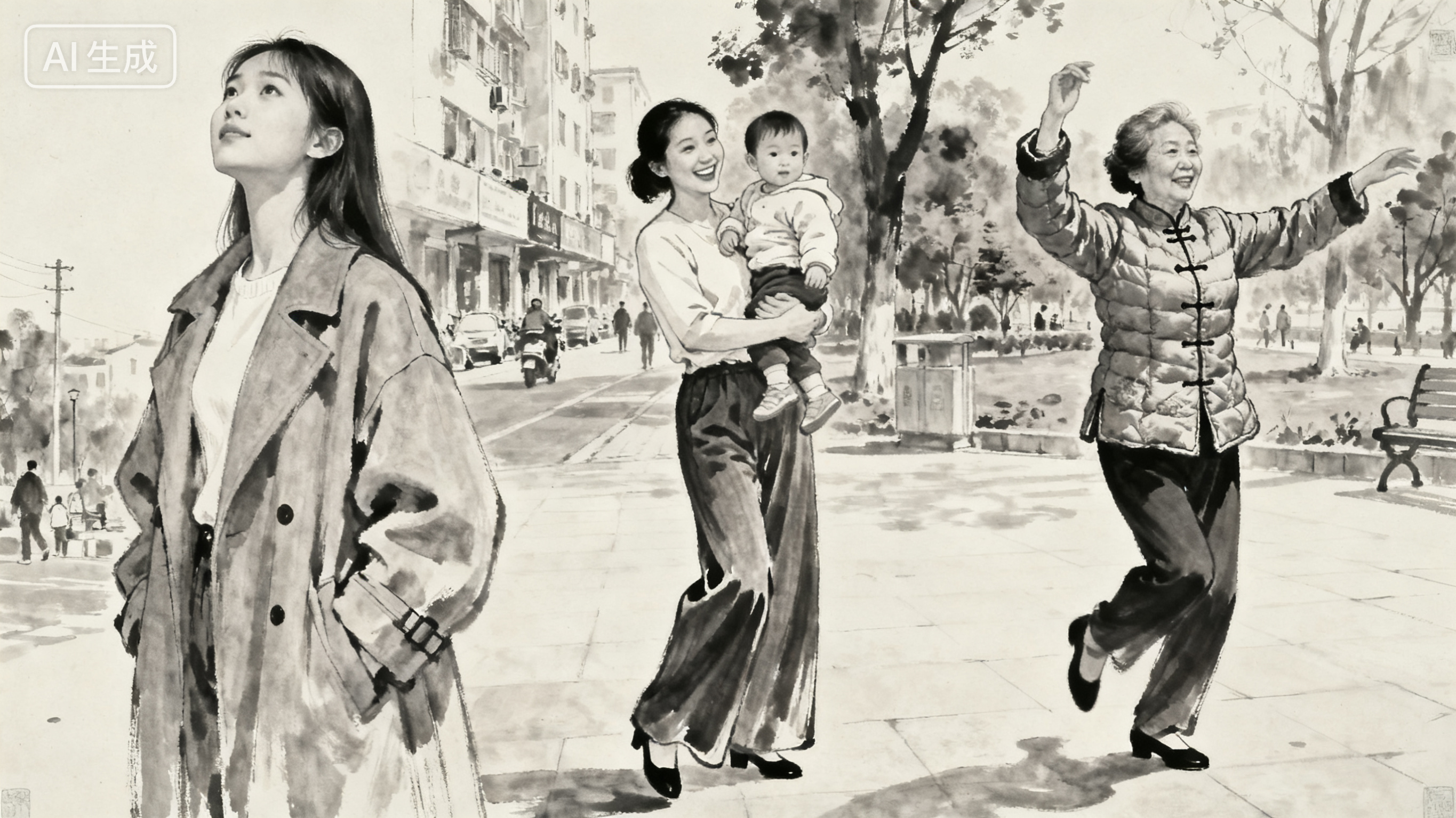 你看菜市场里,穿着宽松棉服的阿姨,笑着挑新鲜的蔬菜;你看公园里,穿着阔腿裤的姑娘,悠闲地散步晒太阳;你看小区里,穿着宽松卫衣的宝妈,陪着孩子追跑打闹…… 这样的画面,不就是最真实、最温暖的中国日子吗?