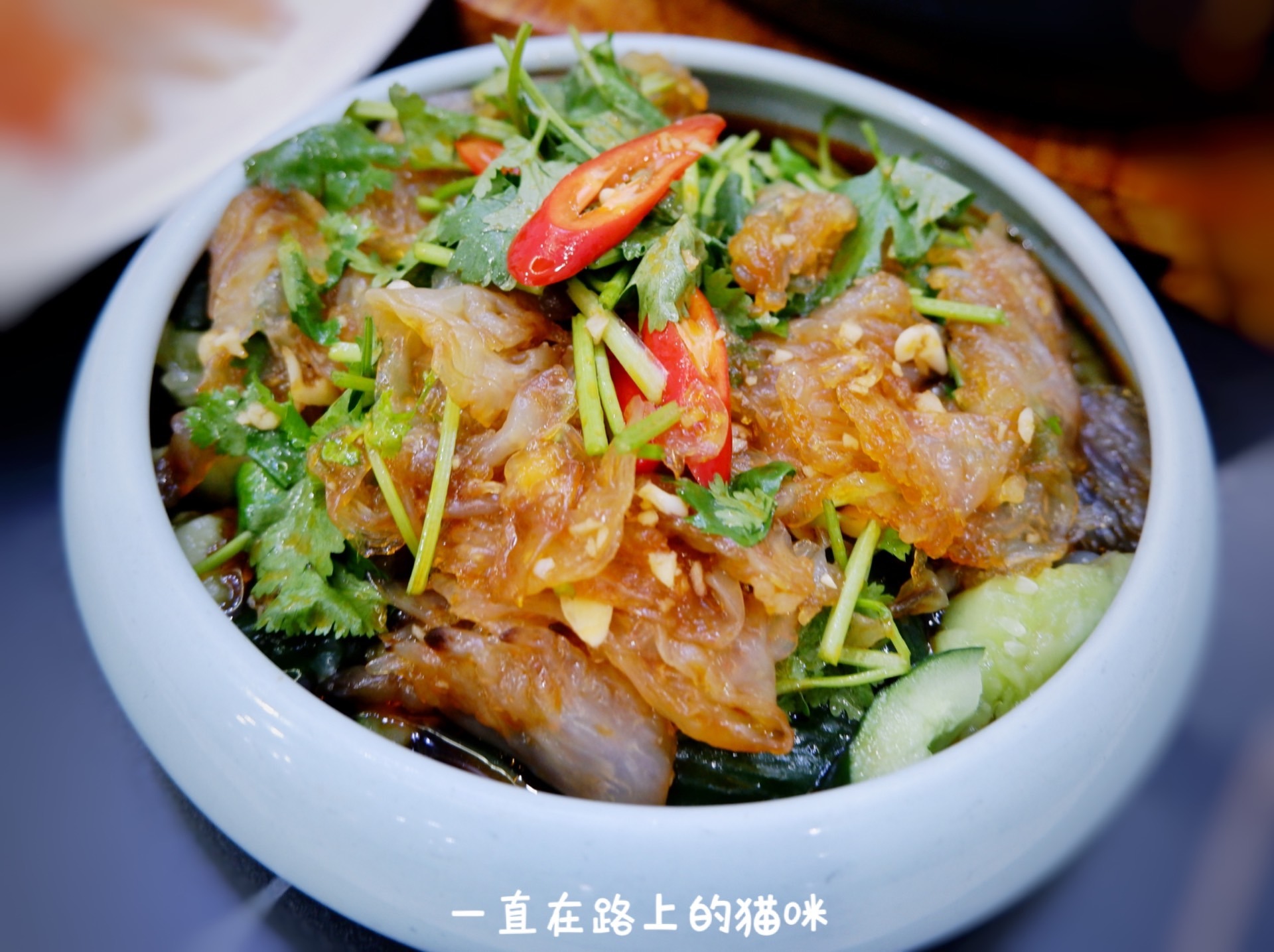 清爽的凉菜,很适合夏天,海蜇都是比较厚的蛰头,吃起来有肉感,加了脆脆的黄瓜和大量的香菜红椒才是灵魂。