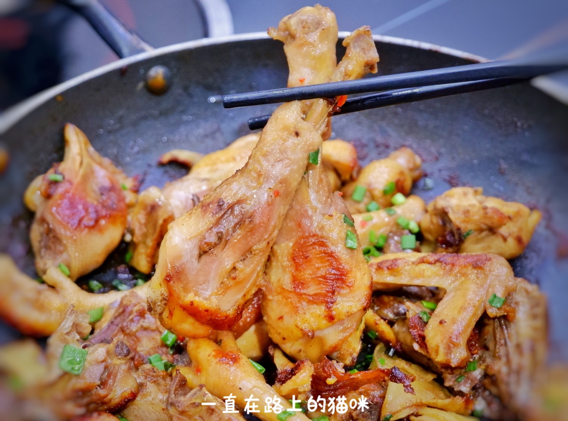 用油煎的土鸡,主要是鸡选的好,肉很嫩不柴,下面铺的姜片,经过油的高温,姜味都浸透到鸡肉里。