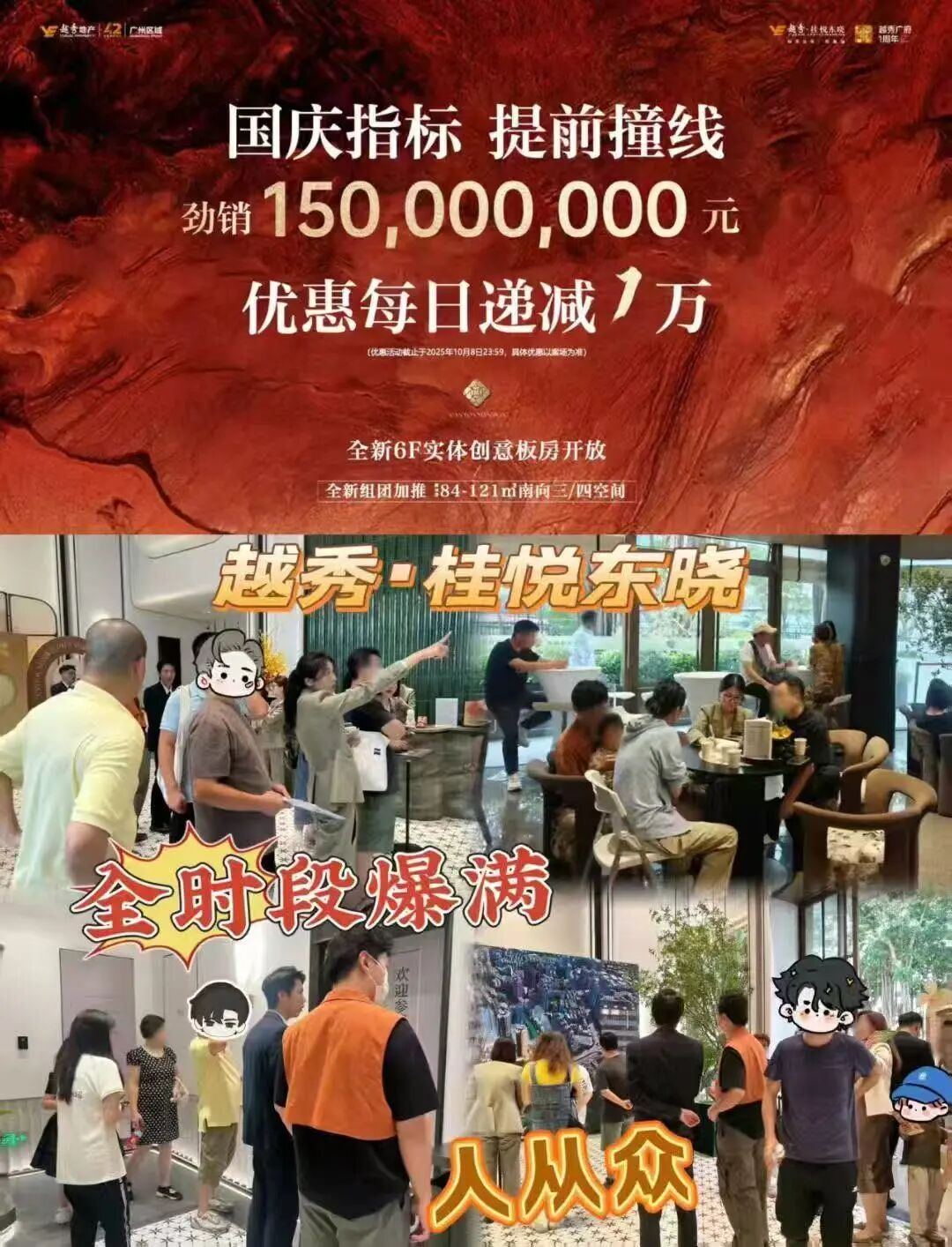 同样位于海珠的越秀·桂悦东晓,10月6日宣布劲销1.5亿元,甚至还打出“优惠每日递减1万”的口号。