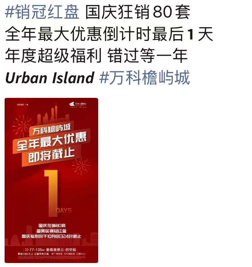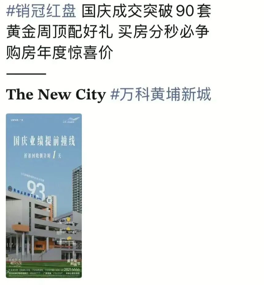 番禺的万科檐屿城,10月4日就宣布目标达成,国庆狂销80套。