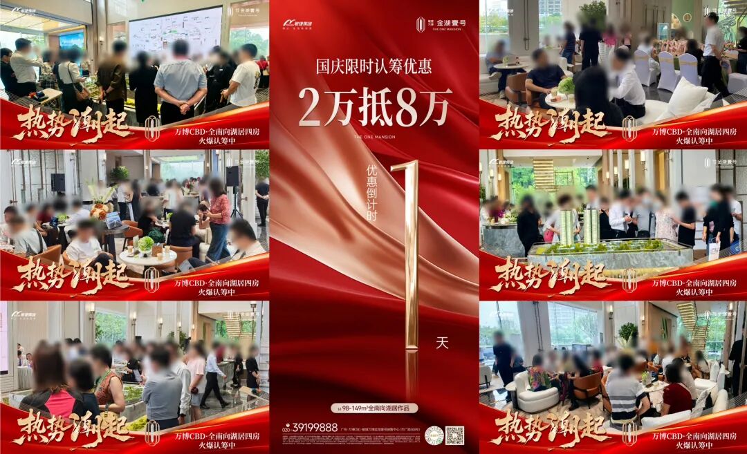 长隆万博CBD板块的耀胜新世界,国庆期间推出"黄金周十重礼遇百万钜惠"以及精选限量专属特惠单位,现场人气燃爆全场满座,高净值客群争相落定,竞购同一优质单位的场景屡见不鲜,甚至有多组客户当天到访即看即定。