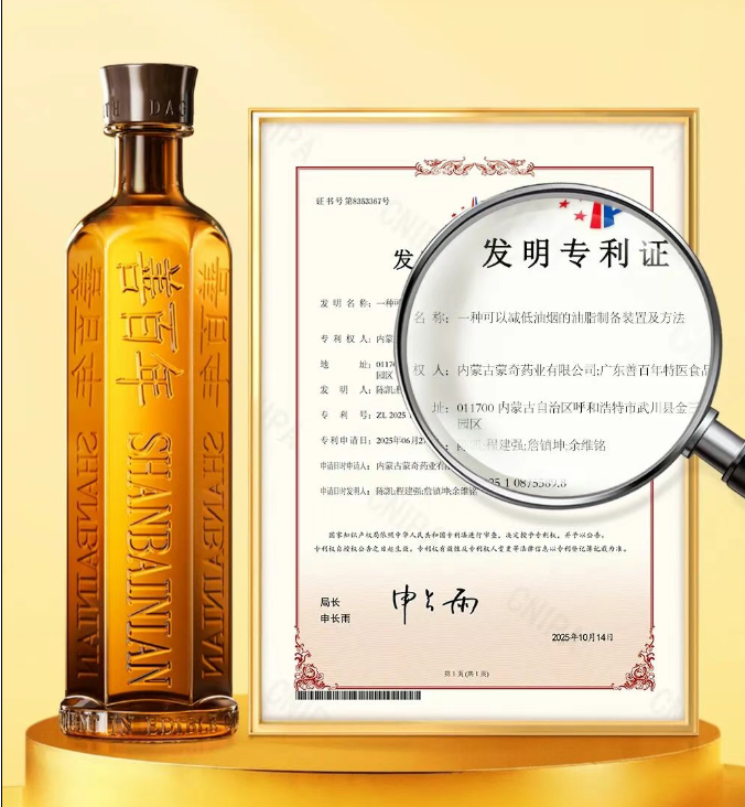 为此,善百年从源头出发,通过持续的技术攻坚与工艺迭代,自主研发“一种可以减低油烟的油脂制备装置及方法”发明专利(专利号:ZL202510875589.8),生产出可以有效降低油烟的甘油二酯食用油,为行业和消费者带来了全新的厨房升级解决方案。