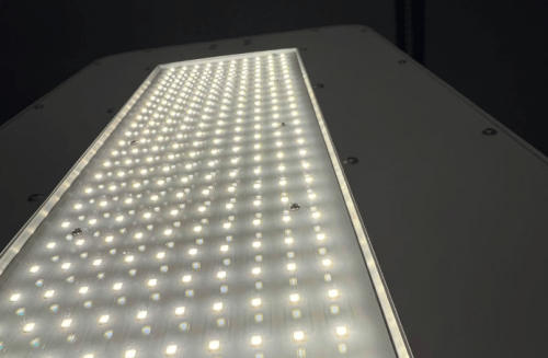 这款护眼大路灯是采用矩形的发光面,而且它的灯杆发光面是做了前伸的设计的,从外观上看比较美观,其矩形的发光面通过上下发光,有效的减少明暗差,并且光线看起来明亮,实际光通量在7395lm左右,但要注意的是虽然实际防眩光指数在11.3左右,但实际体验中发现还是存在轻微的眩光。