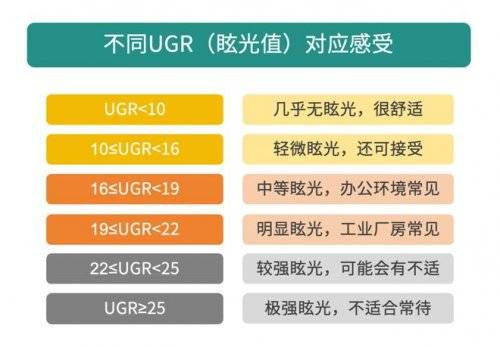 防眩光指数(UGR)是决定光线舒适度中重要的一环,UGR 值越低,光线越柔和,眼睛受到的干扰越少。