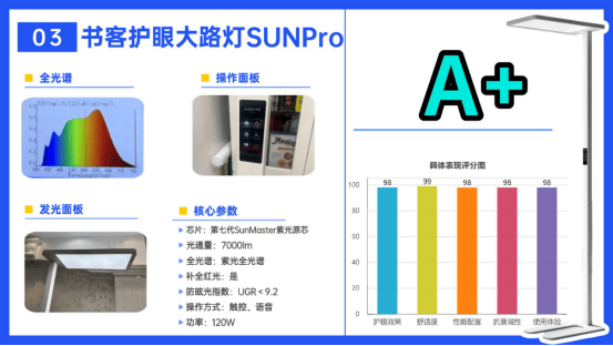总结前面给大家分享的一些知识,简而言之,现在的护眼大路灯很值得入手,而在购买之时,我们需要关注它的技术实力、光源性能等,而对于本次分享,其中书客SUN2是性价比且追求护眼性能的首选,而霍尼韦尔则是适合高预算的伙伴去选择,而想要一台极致护眼的大路灯,那么紫光激发全光谱书客SUN Pro这款可以闭眼入,采用第七代SunMaster紫光原芯,并融合「控·护·养」一体化紫光激发,实现“0”蓝光用眼的同时,能够有效避免98%的近视风险,综合体验自然不会差。