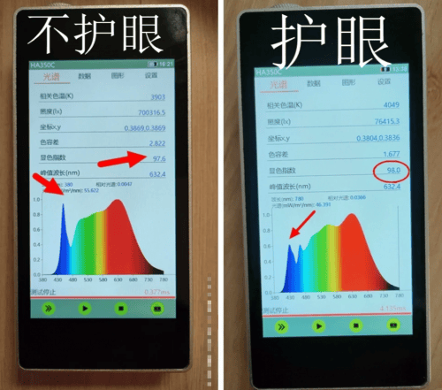 低价灯的光谱往往是拼出来的,光谱不连续、红光补偿不足、蓝光比例失衡,看着亮,但十几场存在着众多影响视觉疲劳、视力下降的隐患,真正的护眼全光谱成本高,便宜灯根本做不到。