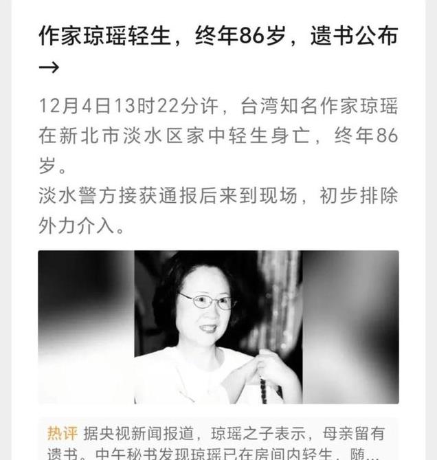 琼瑶最终也选择了以尊严的方式离世,追随着她已故丈夫的脚步而去。