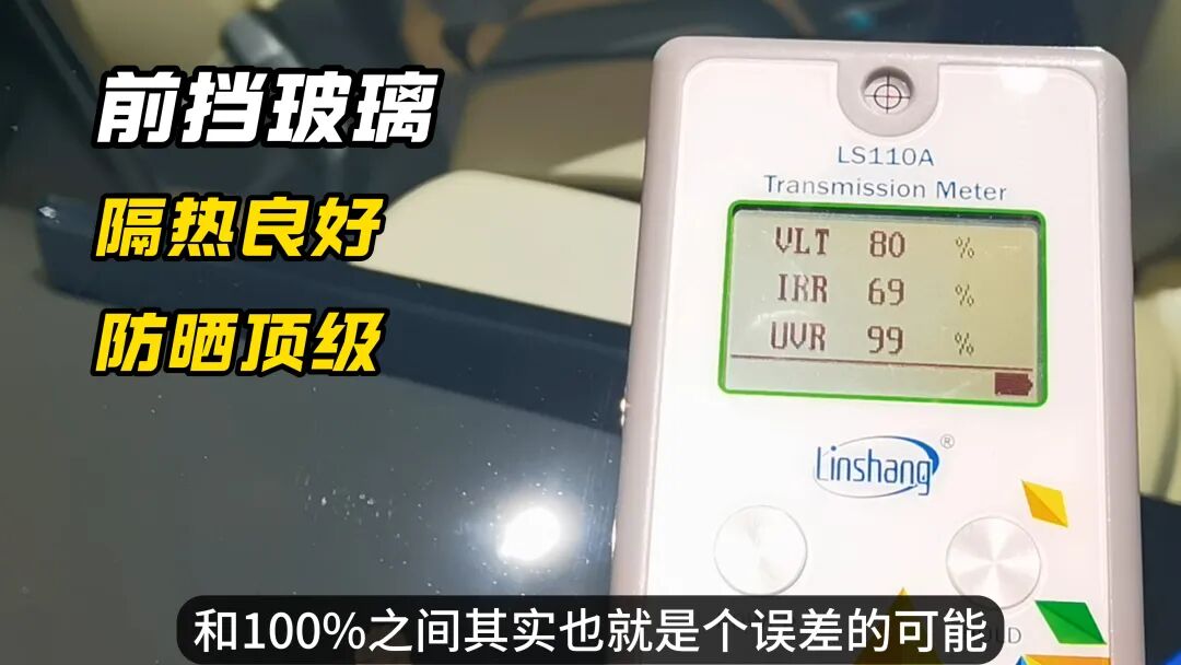 这套测试模型以及评价标准,就是用所有测得的红外线阻隔率数据加上所有的紫外线阻隔率数据,除以2,再除以测试的玻璃数量,就能得出全车防晒指数。满分100分,分数越高,防晒指数就越强。至于透光率并不在评价体系的考量范围之类,因为这个是有专门的国家强制标准来限制的,大家不用担心前挡玻璃透光率过低。