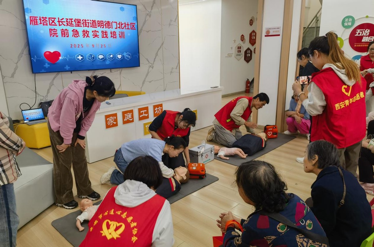 2025年9月25日上午,雁塔区长延堡街道明德门北社区活动室内暖意融融,一场实用的急救知识公益培训在此开展。西安市心连心志愿者协会院前急救支队在主讲导师魏文强的带领下,讲解了急救基础知识,内科急症,创伤急症,CPR和AED四个理论知识,为社区居民、工作人员送上了一堂“零距离”的生命守护课,现场学习氛围浓厚。