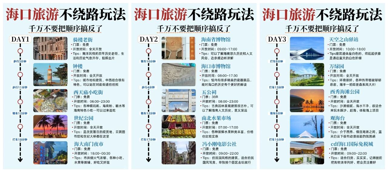 🚗交通攻略:各地飞往海口美兰机场,机票折扣多;市区内公交、出租车出行方便,共享单车也很普及。