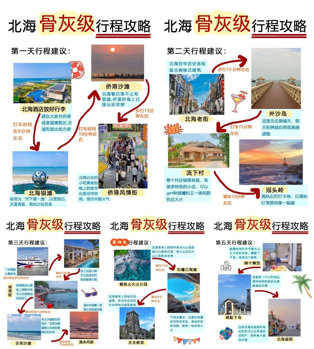 🏨住宿建议:市区可选银滩附近民宿,价格100-200元/晚;涠洲岛推荐住五彩滩周边,方便看日出,民宿价格150-300元/晚。