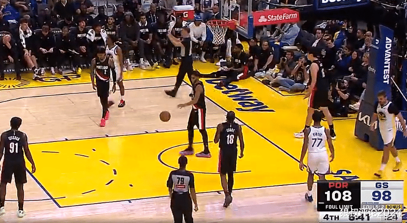 再往后一次接触球权的进攻,杨瀚森又被底角裁判吹进攻犯规,这个回合瀚森可以看到勇士队形成包夹时是否完全没有失去位置,或许是本场比赛杨瀚森犯规最大的谜团之一。