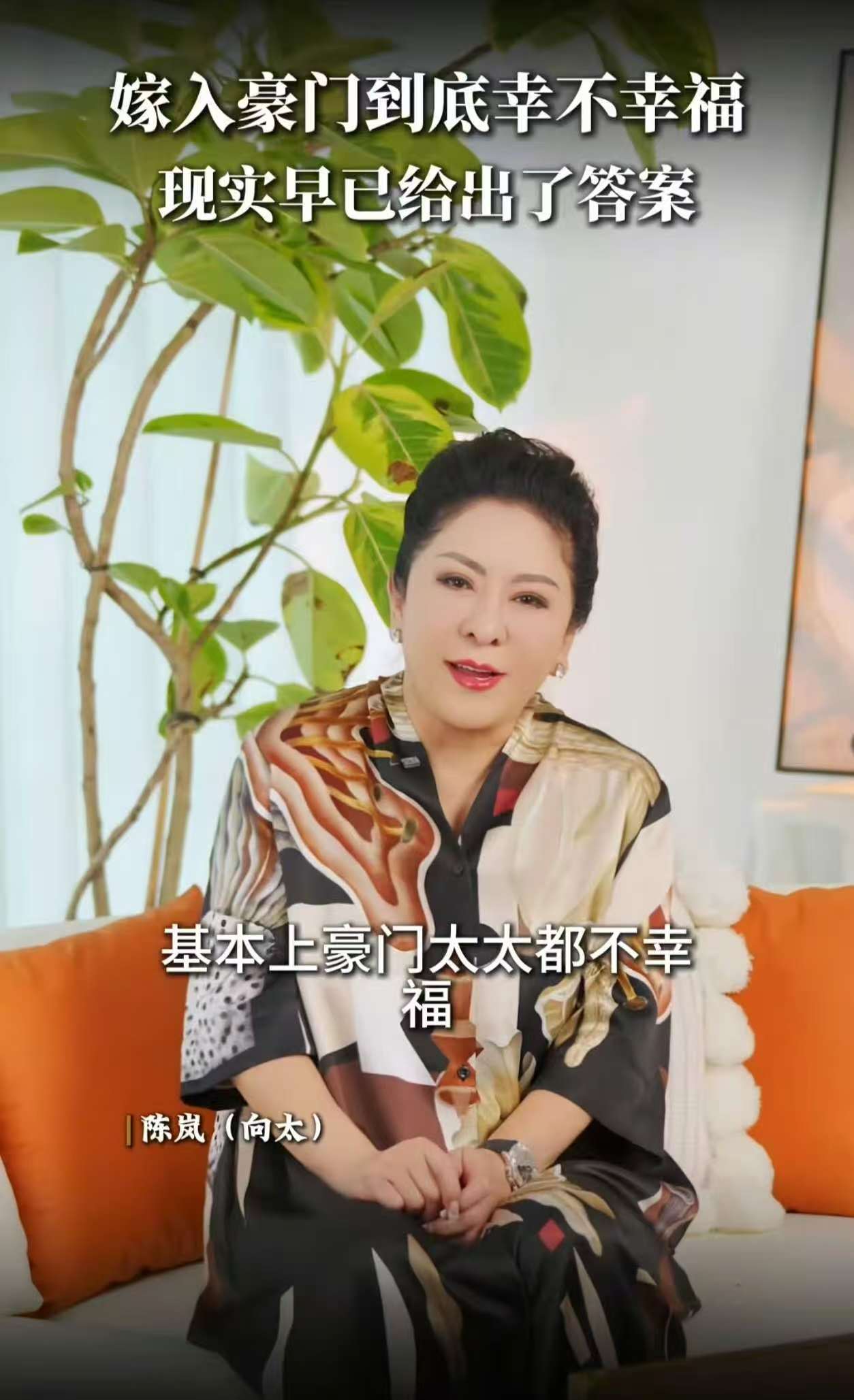 娱乐圈又炸出一颗“人间清醒弹”——向太陈岚在社交平台甩出一句大实话:“嫁入豪门的太太,基本都不幸福!”这话一出,网友集体瞳孔地震:连豪门婆婆都亲自下场劝退,这瓜保熟吗?