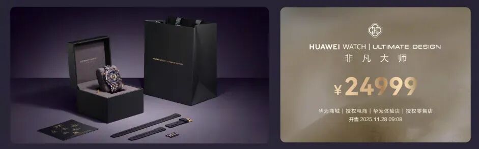 售价方面,新一代华为非凡大师紫金款手表售价24999元。