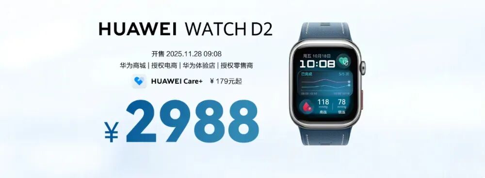 华为WATCH D2腕部动态血压记录仪带来全新配色星云蓝及新升级,新增血压检测提醒功能,全面开启预售,售价2988元。