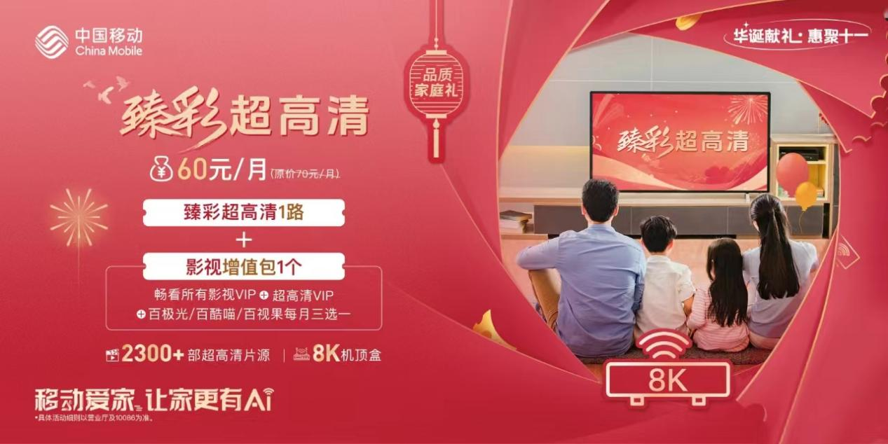 上海移动“华诞献礼 聚惠十一”福利季活动火热进行中,出境无忧、尊享权益、银发关爱、品质家庭、出行畅享五重好礼广受欢迎。其中,品质家庭礼主打臻彩超高清优惠,仅需60元/月,不仅可以开通臻彩超高清1路,还享受影视增值包1个,心仪已久的片单,上海移动陪你国庆宅家看个够~