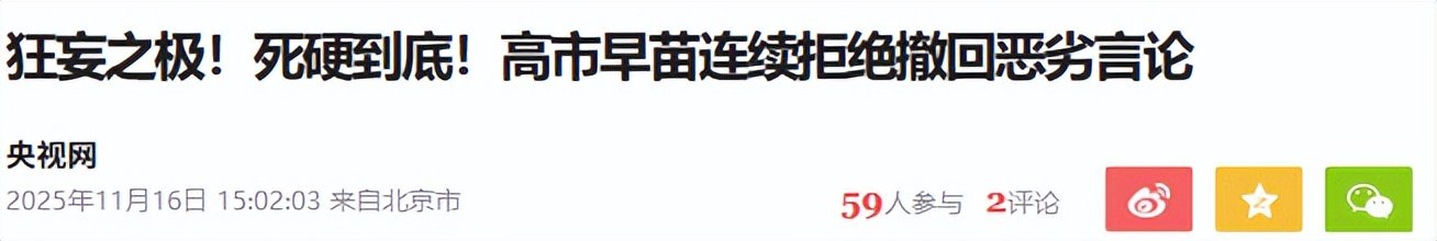有日本官员私下承认,日中对立可能还没到顶点,双边关系最长可能需要四五年时间才能恢复。但高市在峰会后却又表示,"对双方的对话持开放态度,并未关闭沟通的大门"。这前后态度变化,是不是有点太随意了?
