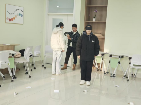 团队协作环节更是温情满溢。“默契传声”“你是我的眼”两项游戏,剥离了语言的便捷,要求学子们仅凭肢体的默契、眼神的交流完成任务。当有人主动搀扶同伴跨越障碍,当有人用手势精准传递信息,信任在指尖流转,理解在眼神中升温。大家在协作中深刻懂得,对于特殊群体而言,一份陪伴、一次帮扶,便是照亮前路的微光。