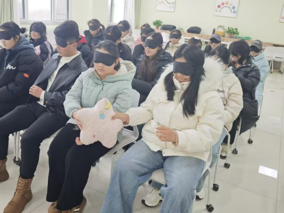 近日,药学系在悦心放松室举办“沉浸式盲感体验,唤醒心灵同理心”主题解压活动。20名学子卸下纷扰,全情投入这场特殊的感官探索之旅,在黑暗与光影的交替、听觉与触觉的交织中,深度共情盲人群体的生活日常,于互动协作中凝聚理解与关怀的力量,为校园注入了包容互助的温暖底色。