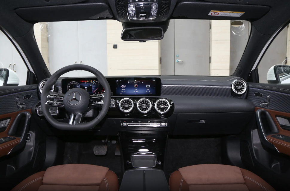相比于外观,个人觉得还是奔驰A级的内饰更有看点,这么多年以来都是对这套经典设计语言的沿袭,毕竟这是奔驰家族最为经典设计风格,在营造豪华氛围这一方面确实有点东西。各种材质的应用有效提升内饰质感,对细节的处理比较到位,因此获得了不少好评。双联屏是比较显眼的存在,中控屏和仪表盘的尺寸均为10.25寸,尺寸不大但是足够用了,五个涡轮状空调出风口均匀分布在中控台各处,这也是奔驰的一大灵魂设计,只要看到这些经典元素立马就能分辨出它的身份。