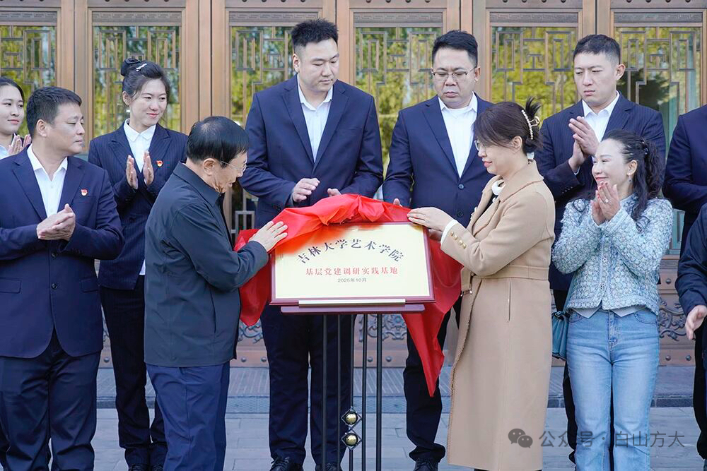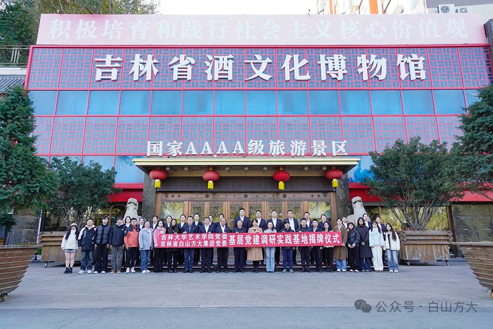 在党的二十届四中全会胜利召开的热烈气氛中,10月21日下午,“吉林大学艺术学院基层党建调研实践基地”揭牌仪式在白山方大集团吉林省酒文化博物馆举行,吉林大学艺术学院党委书记冯彦杰、白山方大集团党委书记、董事长宁凤莲等校企双方有关领导出席揭牌仪式。
