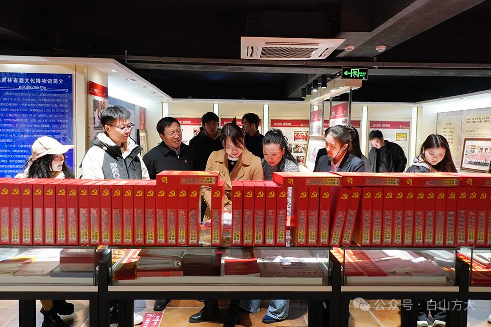 在校企双方的共同鉴证下,吉林大学艺术学院党委书记冯彦杰同志、白山方大集团党委书记、董事长宁凤莲同志共同为“吉林大学艺术学院基层党建调研实践基地”揭牌。随后,参加揭牌仪式的吉林大学艺术学院领导在白山方大集团党委书记、董事长宁凤莲的陪同下,参观了白山方大集团吉林省酒文化博物馆党建文化展室。