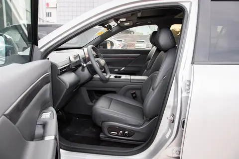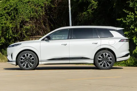 eπ008 的车身长度是5002毫米,车身宽度是1972毫米,车身高度是1732毫米,轴距达到了3025毫米,eπ008 的风阻系数为0.28Cd,对一台中大型SUV来说已经很不容易了。eπ008 的车头采用了家族式的设计风格,贯穿式的灯组三段式设计,两边的LED大灯基础功能都有,夜间照明不是问题。下面是东风奕派的LOGO,主动闭合式进气格栅是标配,两边还有导流槽,运动感还是很不错的。eπ008 采用了21英寸的轮毂,而且前后的轮胎宽度都是265毫米,抓地力特别强。隐藏式门把手解锁车辆之后就会弹出来,前后排用的还都是隔音玻璃,后排这里是隐私玻璃,照顾到了家人的私密性。车顶上有全景天窗,并且车内还提供了电动遮阳帘,车顶上的行李架可以装上一些户外装备。eπ008 的后备箱空间是495L,放下五个大号行李箱是不成问题的。尾灯是贯穿式的设计,并且灯罩进行了黑化,看起来会比较战斗。