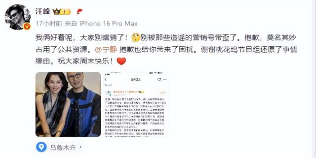 而汪峰也发文解释,他和森林北之间的感情并没有出现问题,甚至还为自己的行为向宁静道歉。