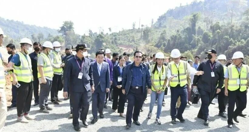 (柬埔寨首相视察中国电建承建的菩萨河水电站工程)