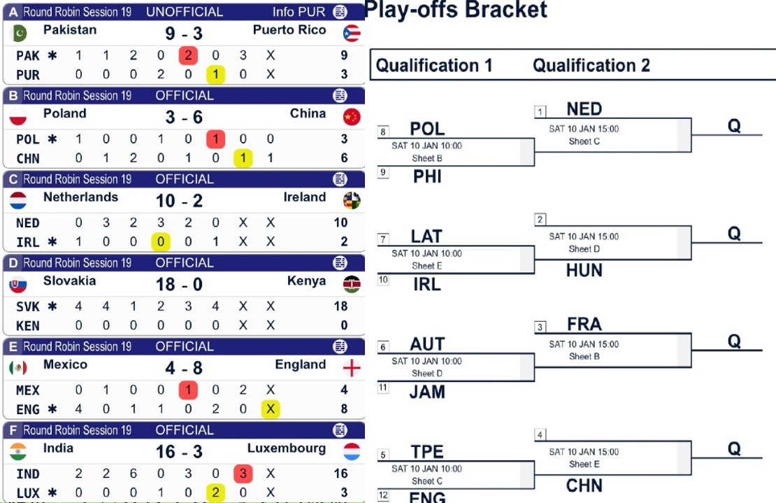【A组】荷兰6胜(晋级八强)、爱尔兰4胜2负(晋级12强),斯洛伐克4胜2负,立陶宛3胜3负,印度2胜4负,卢森堡2胜4负,肯尼亚6连败。