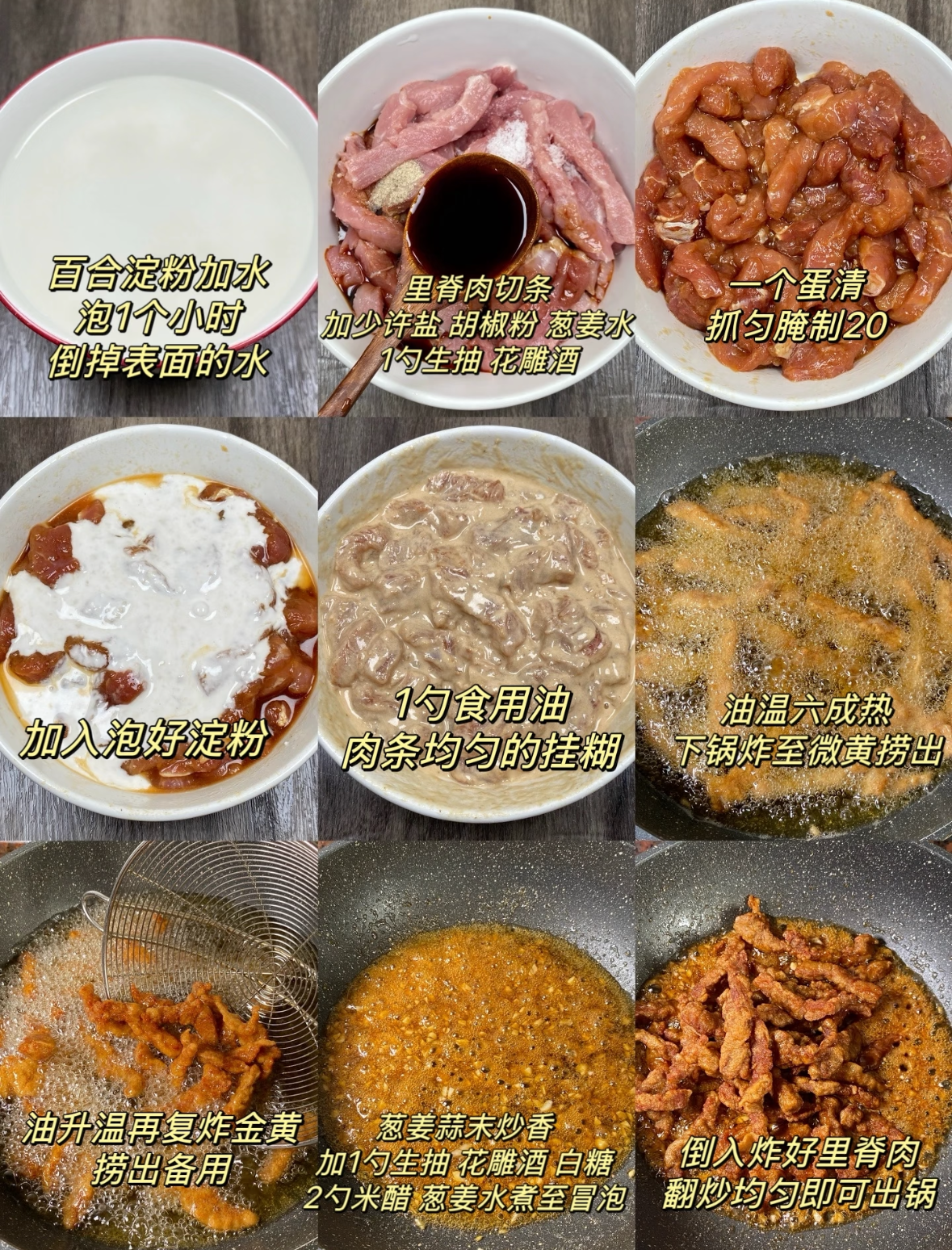 先说选肉。里脊肉要挑颜色淡粉、摸起来紧实不黏手的,一条大概半斤就够三口之家过嘴瘾。回家先别急着切,丢进冷冻室冻二十分钟,微微发硬最好切,能切出均匀小拇指粗的条,不薄不厚,炸完才外酥里嫩。切完用清水冲两遍,把血水冲掉,再攥干水分,这一步去腥关键,千万别偷懒。接着腌肉:一勺料酒、半勺白胡椒、两勺生抽、半勺糖、一点盐,再敲个蛋清进去,抓到手发黏,最后封一层干淀粉,静置十分钟,让肉条穿上一层“防弹衣”,炸的时候锁汁又防溅。