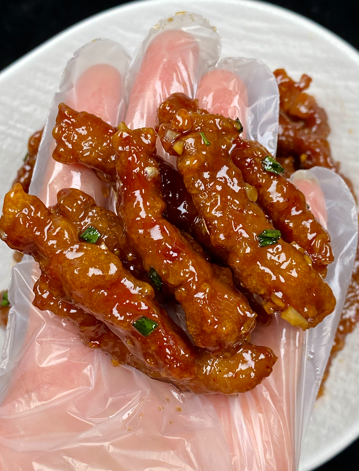 小贴士来了!想更酥脆,腌肉时加一点点泡打粉,外壳会起小蜂窝;怕溅油,在肉条表面再拍一层干淀粉,水分全锁里面;如果一次做太多,炸好分袋冷冻,吃时烤箱一百八十度复烤五分钟,跟现炸一样脆。剩的糖醋汁别倒,第二天拌凉面、蘸春卷,秒变万能酱。