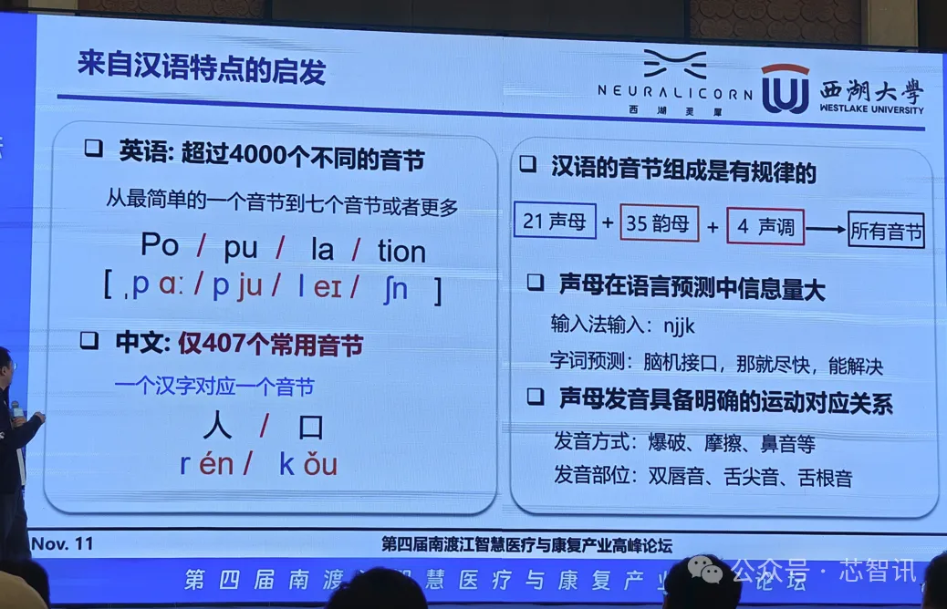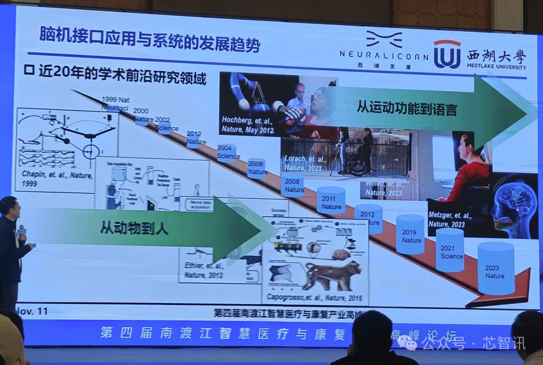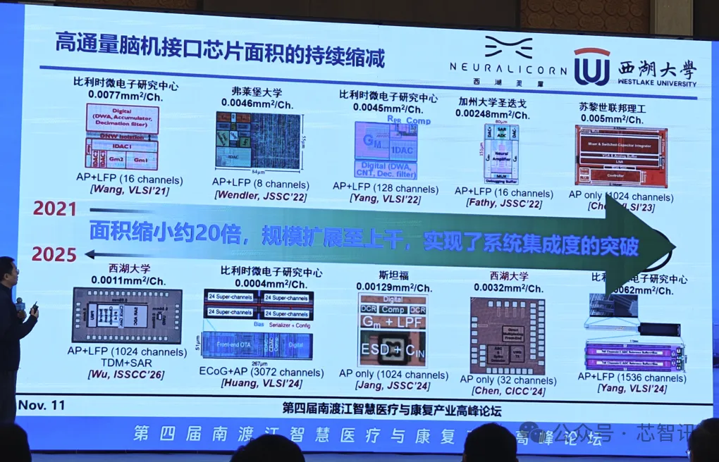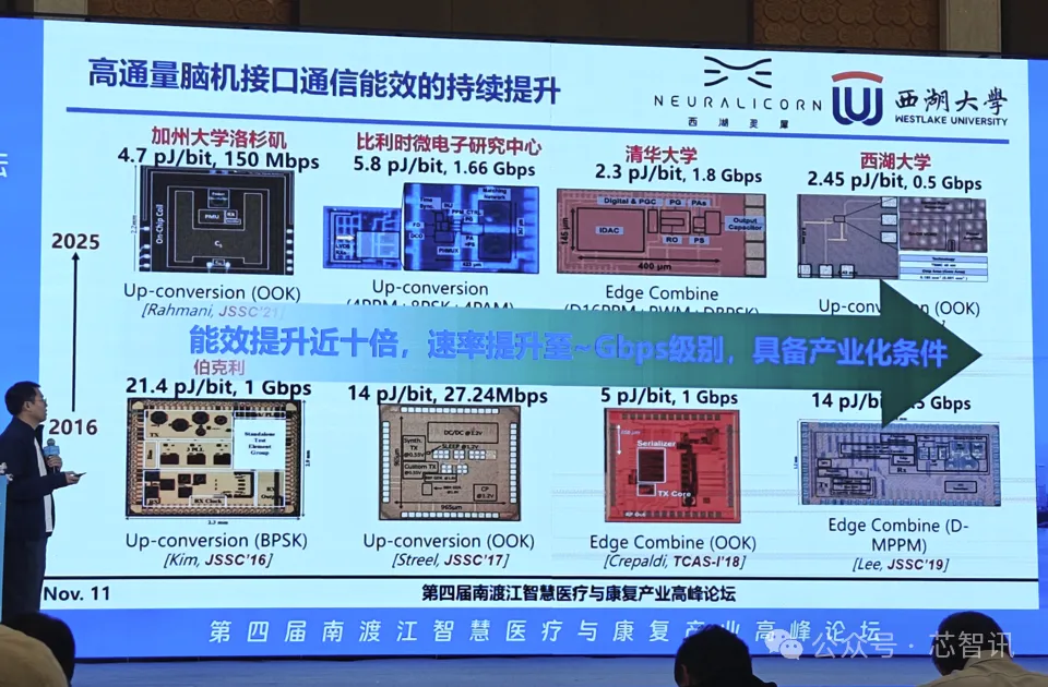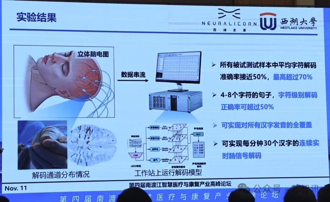 2025年11月11日,由芯原股份主办的“第四届南渡江智慧医疗及康复产业高峰论坛”于今日在海口正式开幕。杭州西湖灵犀科技有限公司(以下简称“西湖灵犀科技”)的联合创始人、西湖大学研究员杨杰博士,介绍了西湖灵犀科技在高通量脑机接口芯片与汉语神经解码方面的最新突破。