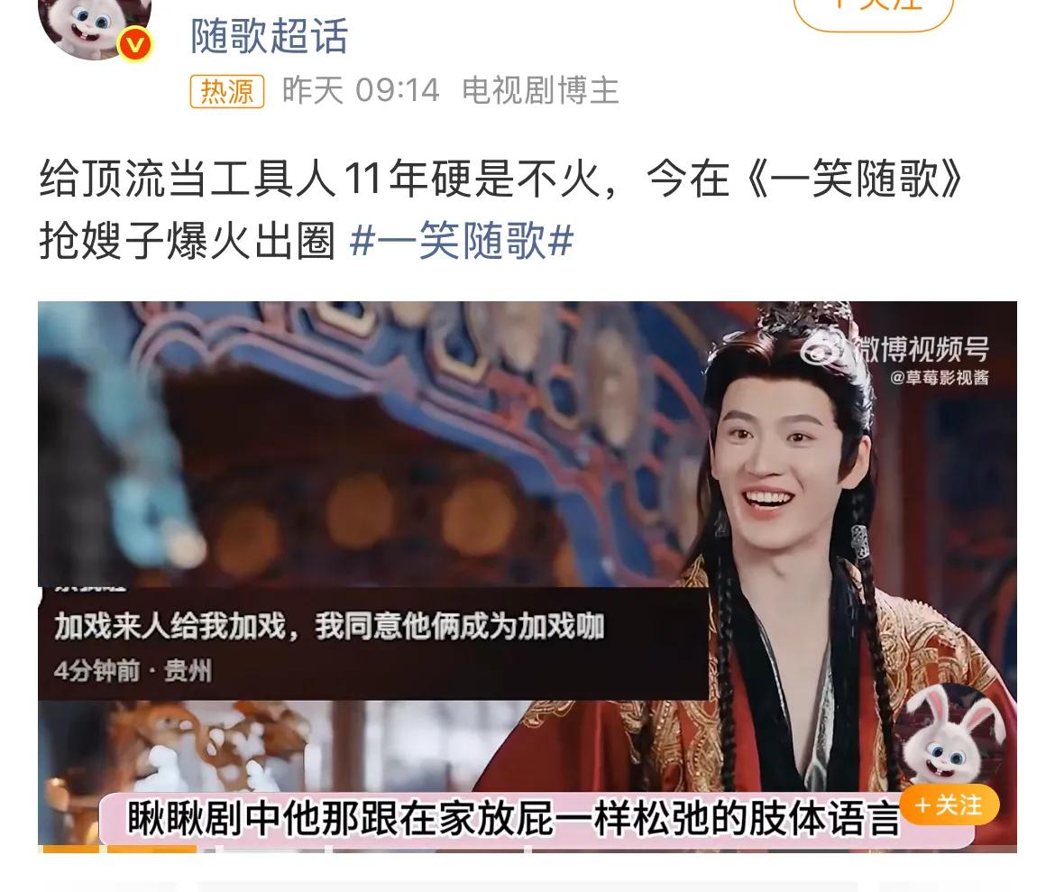 《一笑随歌》桃厂站内热度破9000,进入爆款剧行列,剧粉们终于如愿以偿了。