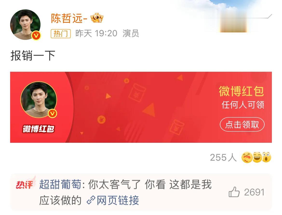 就连演员陈哲远本人都深知追剧的人辛苦了,还发了红包犒劳粉丝以及剧粉。