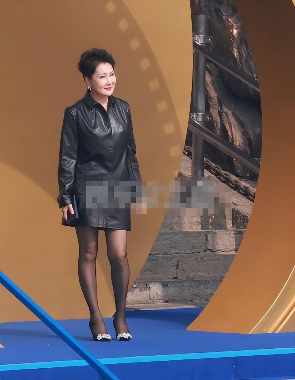 最让人眼前一黑的还属张凯丽。63岁的年龄,却身穿皮质小短裙,搭配黑丝上阵。