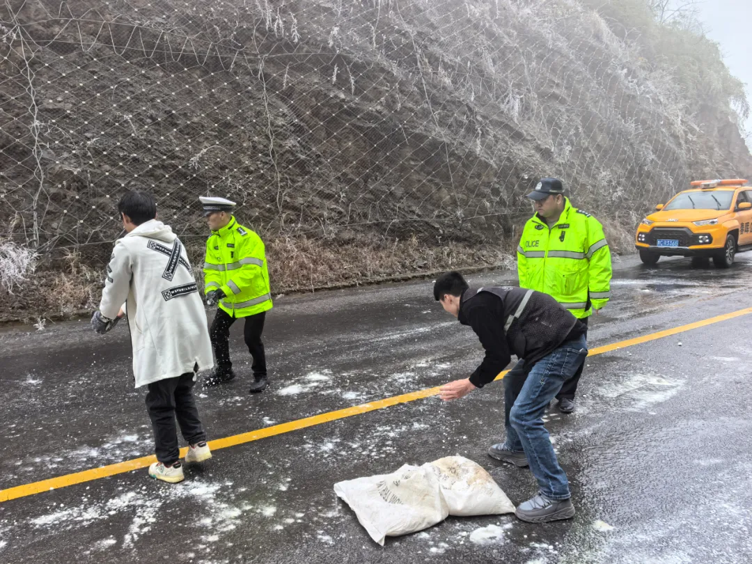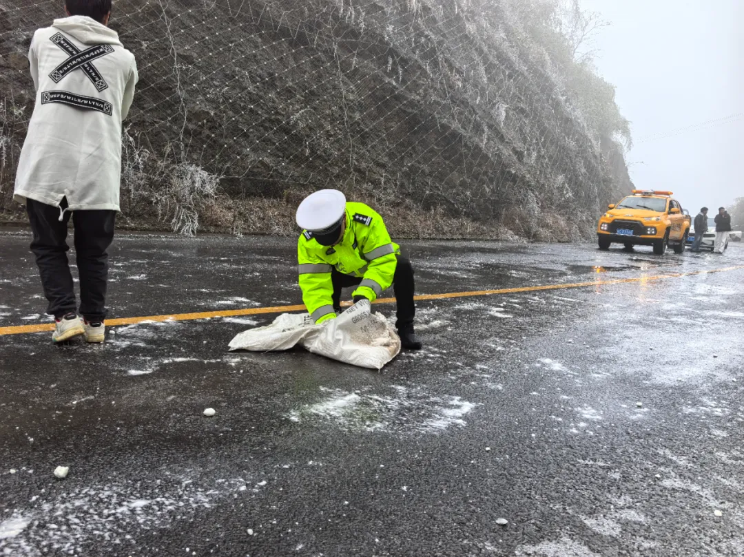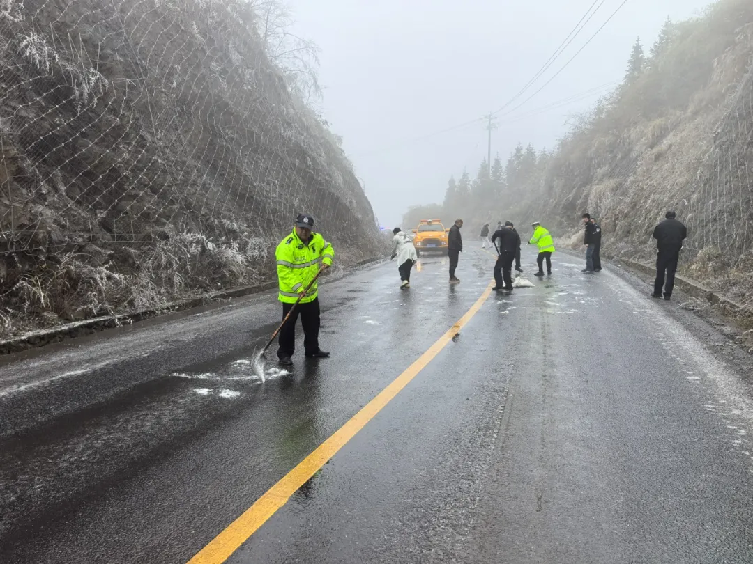 及时对结冰路段采取撒盐除冰等处置措施