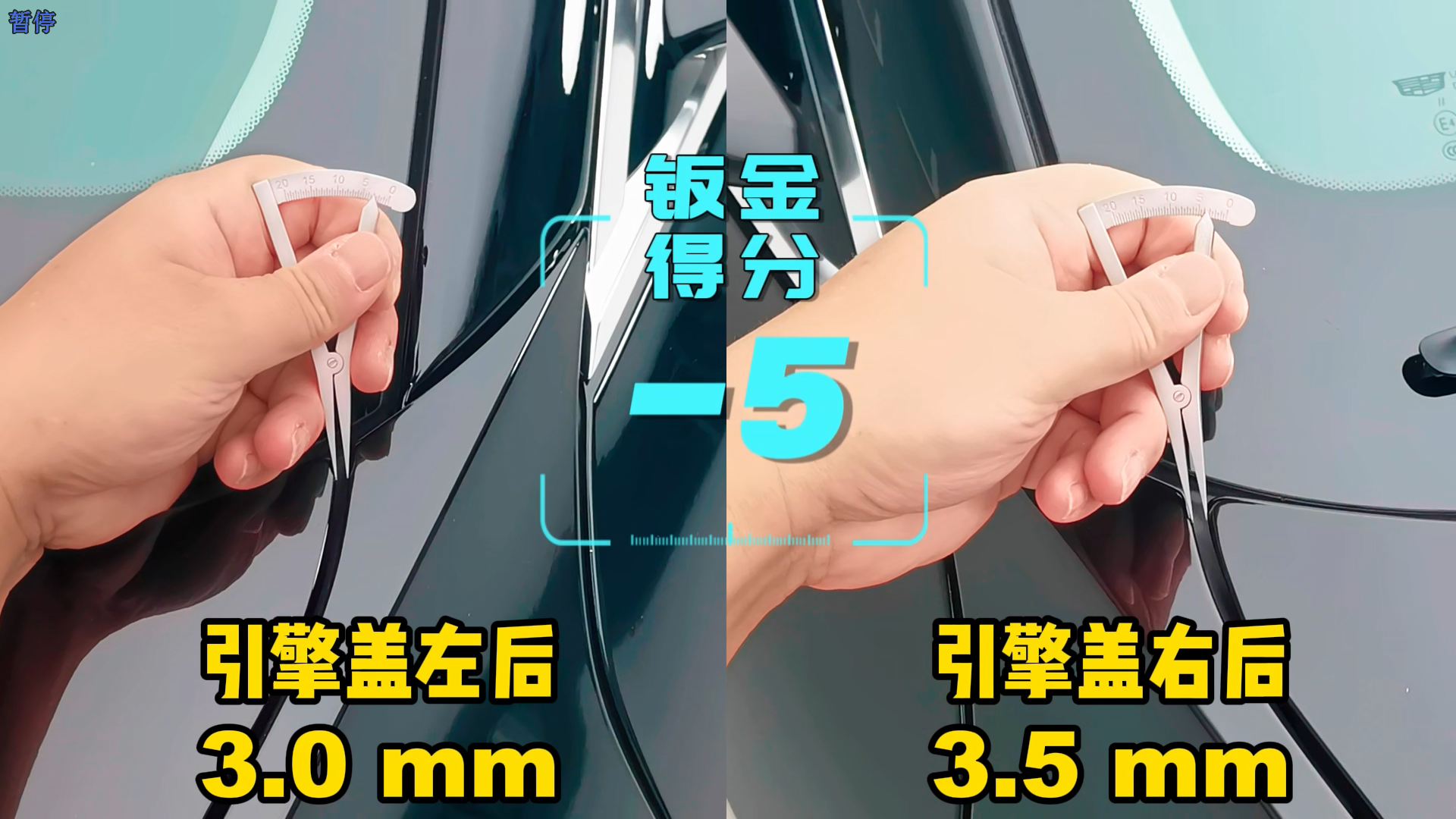 车身工艺是由钣金工艺还有喷涂工艺两部分组成。钣金工艺我们会选择引擎盖还有尾门这两块全车最大的可活动钣金面,测量左右缝隙的误差。一共是四对八组数据,每一对数据出现0.5mm误差就扣5分,出现1mm误差就扣10分,以此类推。波哥扣过的最高分值是50分,一侧缝隙能塞进小手指!不要问什么车,波哥只能告诉你们是日系。