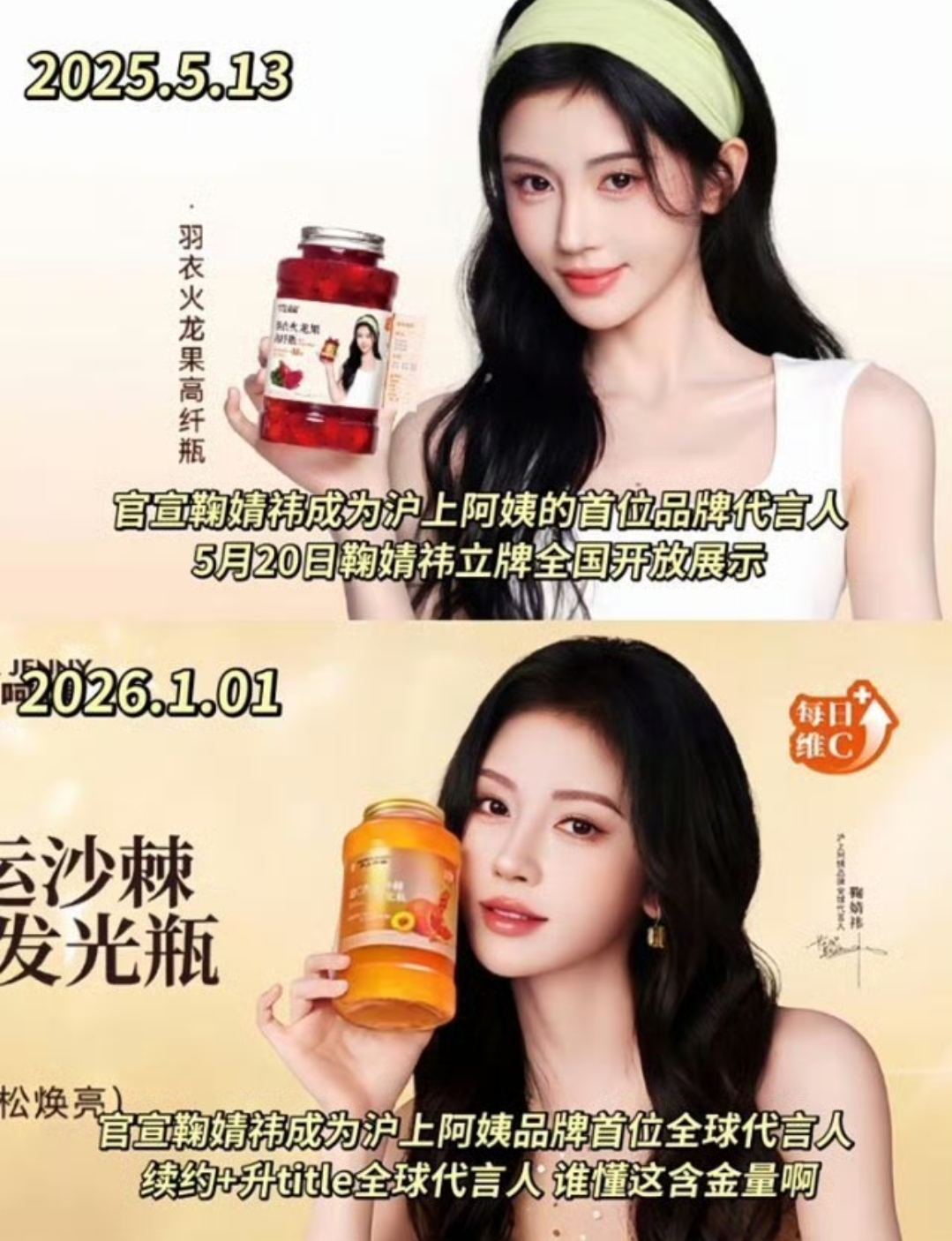 合作仅7个月后,2026年元旦当天11:00,沪上阿姨官方微博突然发布重磅消息:鞠婧祎正式升任首位全球品牌代言人(T级最高头衔),合作主题升级为“祎起自由在握”。这一消息瞬间点燃全网——从品牌代言人到全球代言人,通常需要数年时间积累,而鞠婧祎仅用7个月19天便打破品牌历史纪录,成为该品牌史上最快晋升的代言人。消息发布后,#鞠婧祎全球代言人#话题阅读量2小时内突破3亿,粉丝纷纷在评论区刷屏:“姐姐太争气了!”“从国内到全球,鞠婧祎的商业价值被彻底认可!”