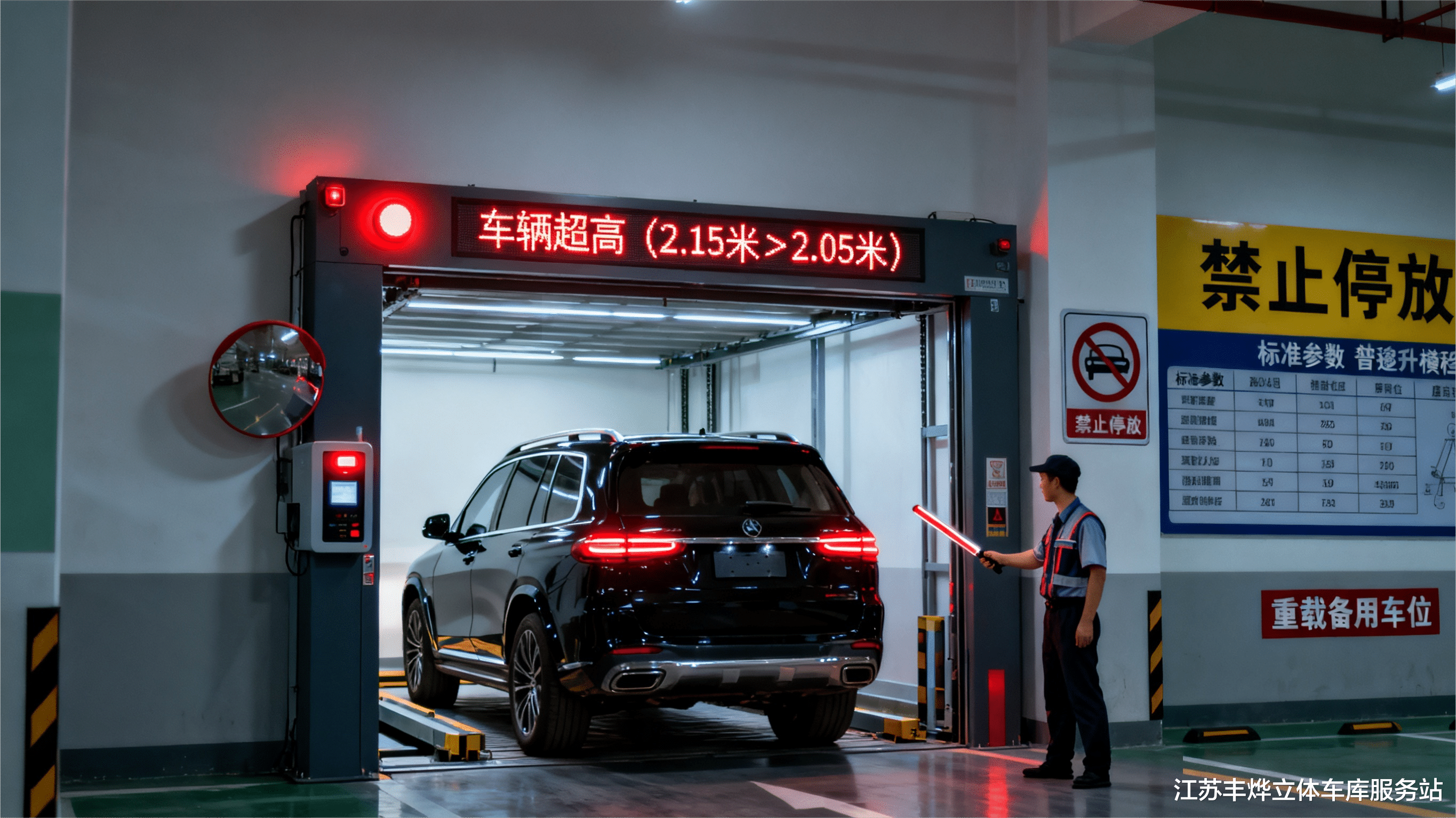 发现车辆超标时应立即停止停放,联系管理人员引导至预留的重载车位。强行停放可能导致机械结构变形,增加设备故障率达30%以上。