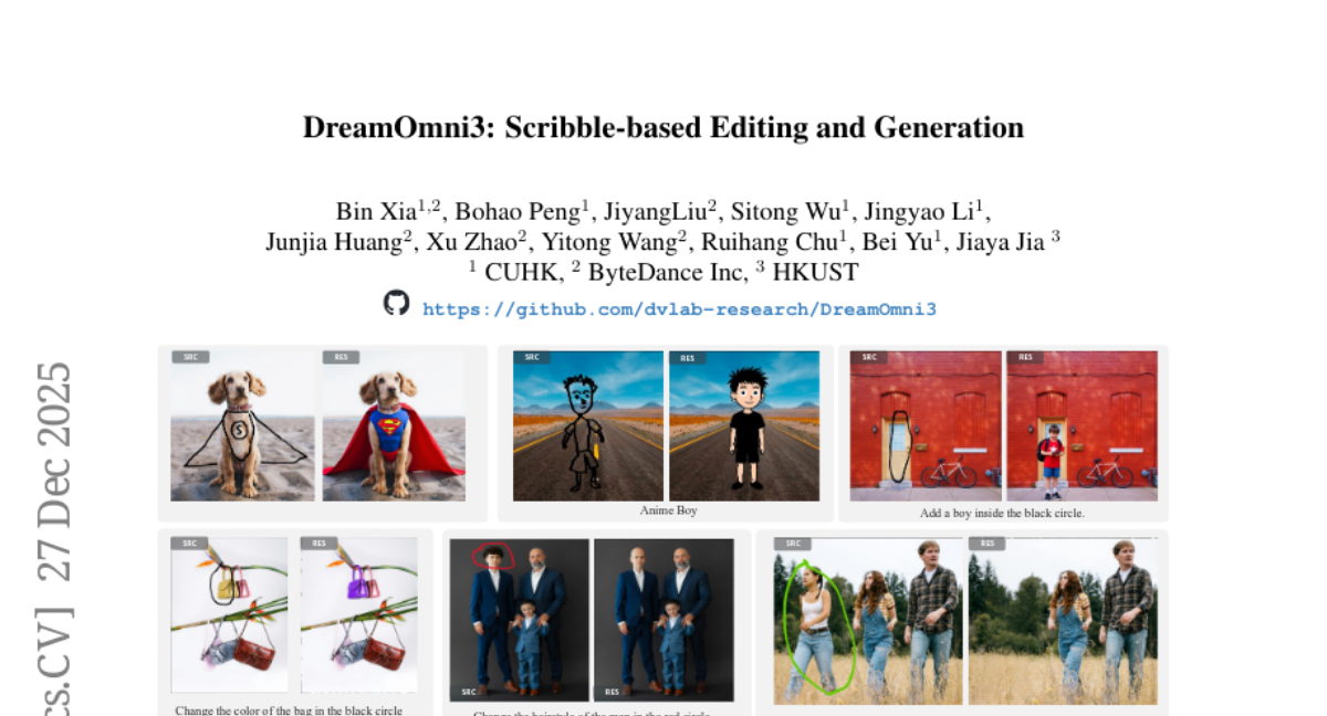这项由中国科学技术大学、字节跳动和香港科技大学共同完成的研究发表于2024年12月,论文编号为arXiv:2512.22525v1。有兴趣深入了解的读者可以通过这个编号查询完整论文。研究团队由来自中科大的夏彬、彭博豪等研究者以及字节跳动的刘继阳、黄俊嘉等工程师组成,他们联手打造了一个名为DreamOmni3的AI系统。