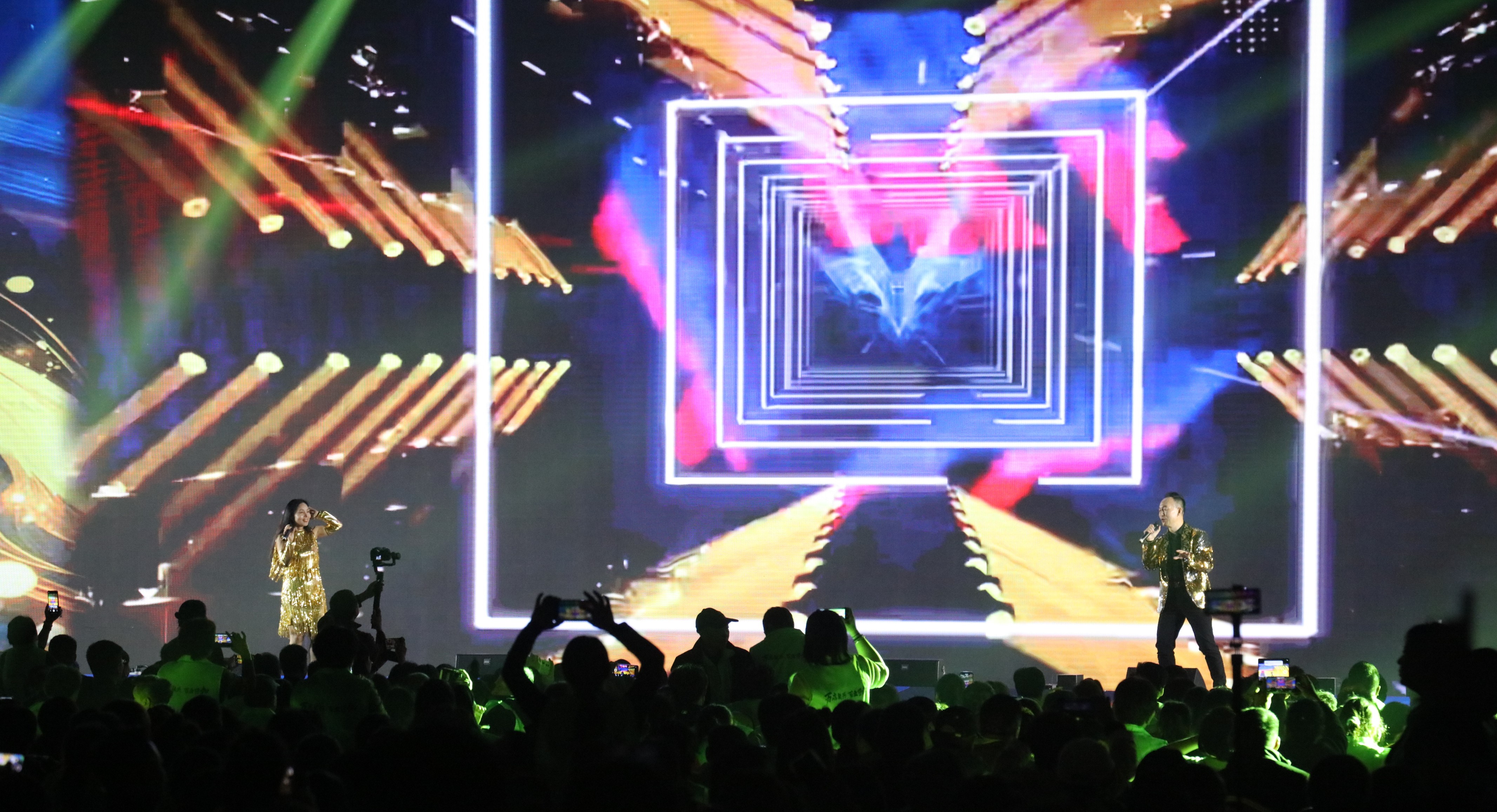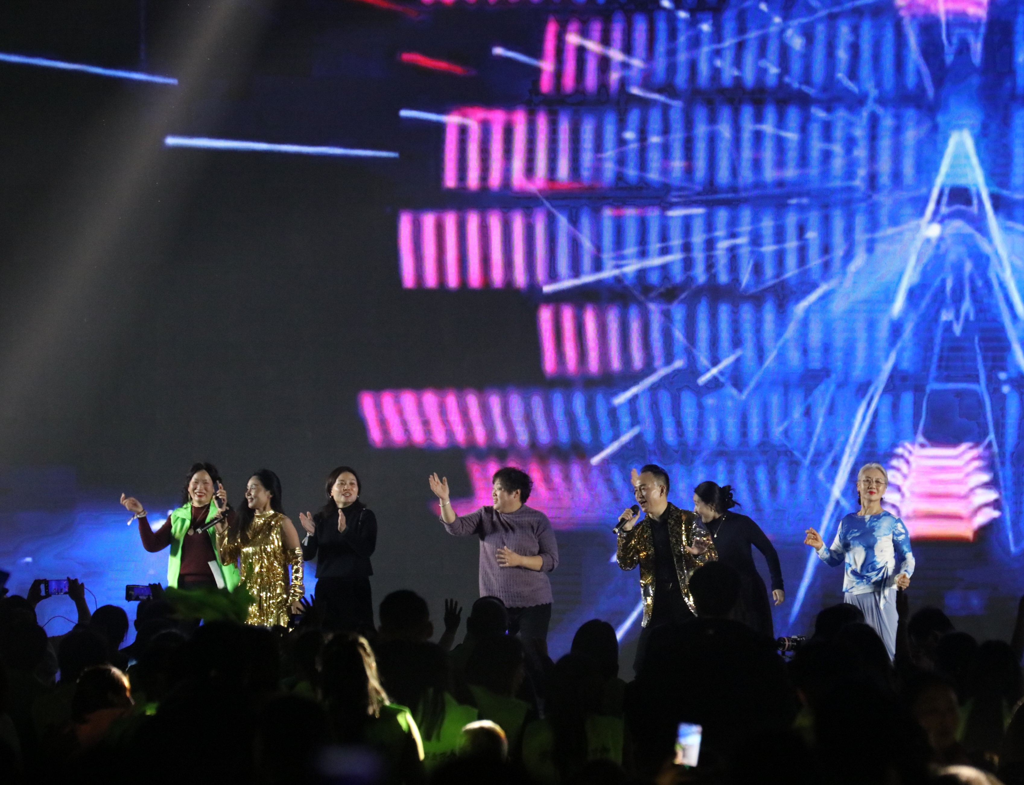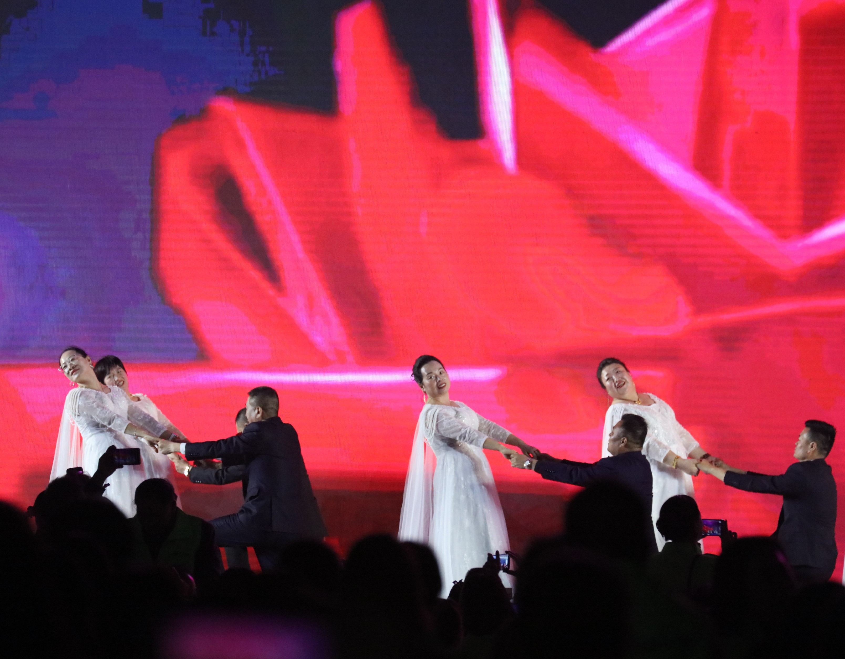 旗帜飞扬,光影交错。一场气势恢宏的开场灯光秀,勾勒出长青人一路走来的铿锵足迹。集体表演《万众一心》以磅礴之势点燃全场,瞬间凝结起情感的共鸣。随之播放的公司视频,则以一幕幕动人画面,重现四十年品牌成长的岁月留痕,令人心潮澎湃,自豪涌动。