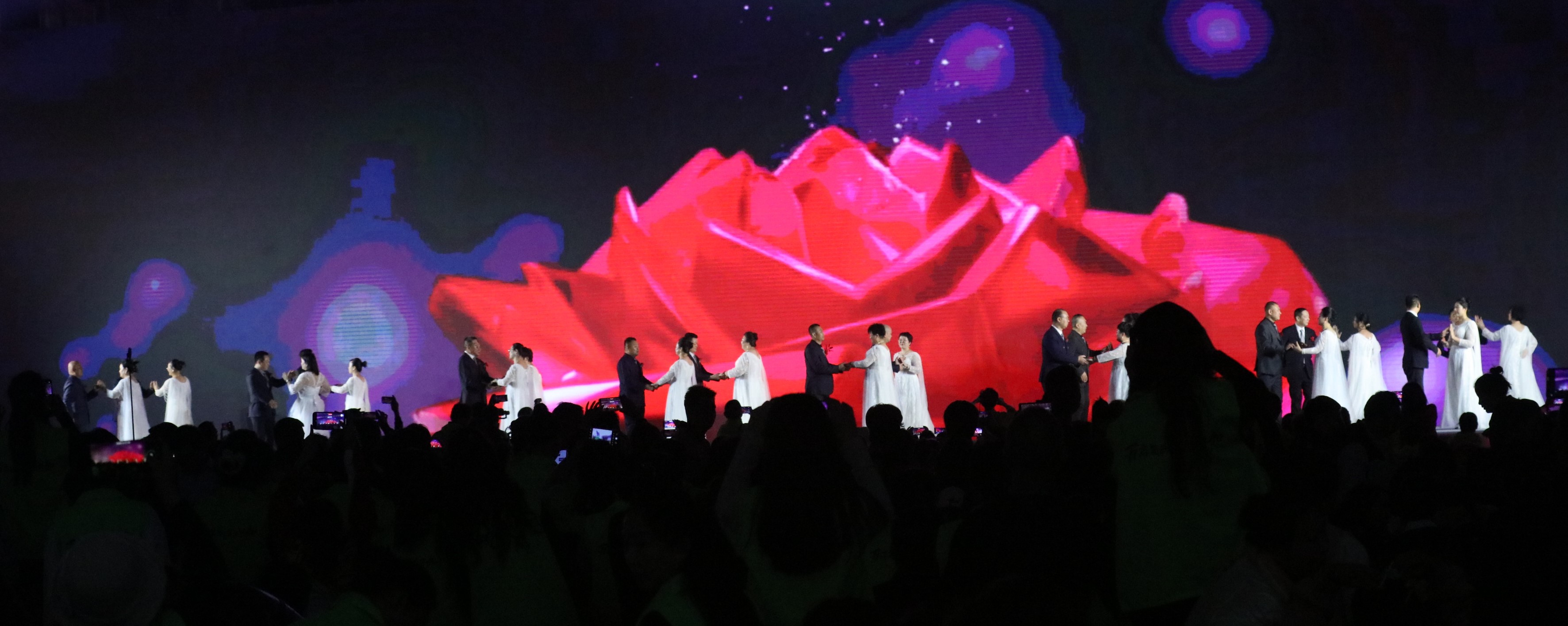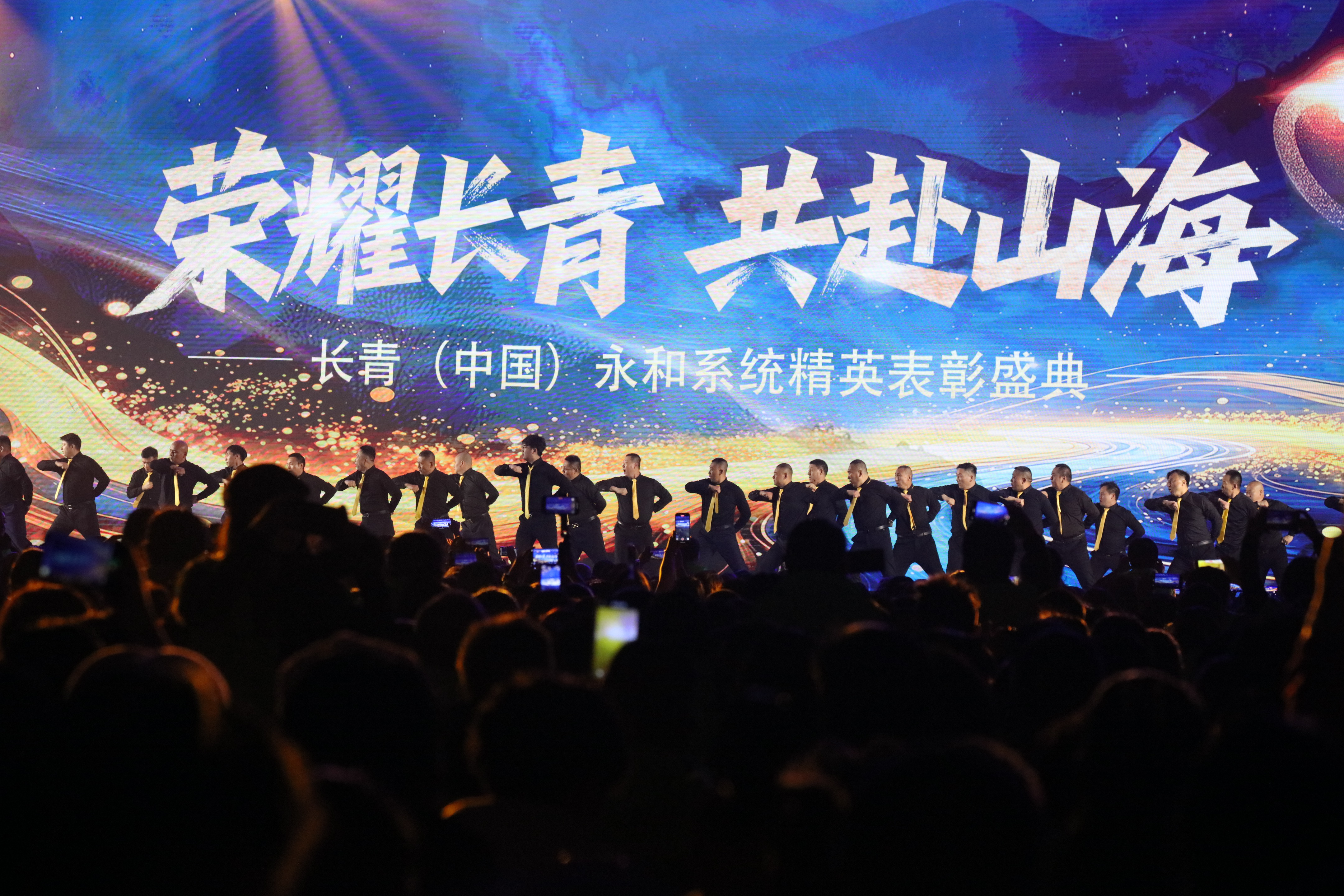 尾声,伉俪深情演绎的《幸福誓言》,以朴实真挚的情感,道出长青人事业与生活并进、理想与爱同行的温暖图景。随后的两场事业分享再次点燃全场热情,领导者的总结发言高瞻远瞩,为盛典作一阶段性收束,也引出了压轴节目《天地龙鳞》。当旋律响起,全场齐声合唱,歌声中有文化的自信,有前行的决心,更有共赴山海的勇气与豪情。