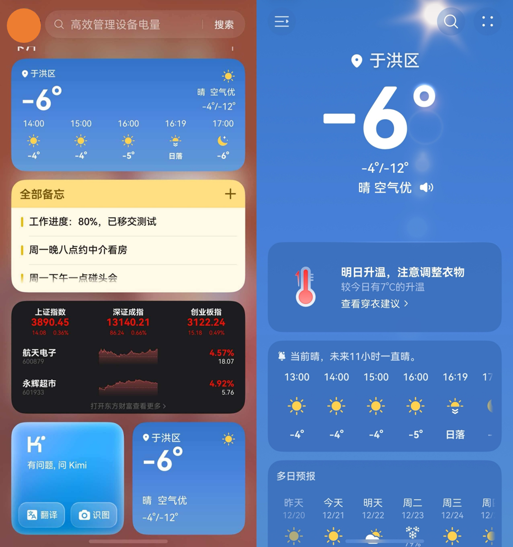 不知道各位小伙伴有没有遇到过这样的情景:在早高峰的地铁车厢里,一手拉着吊环,另一手在三五个App之间来回切,确认着这几件事:今天天气怎么样、会不会下雨?到公司后要开哪些会?今天股票行情怎么样?以前我也天天这么折腾,直到我换了Mate70 Pro,把系统升级到HarmonyOS 6,才发现这些事居然都能在华为负一屏里轻松处理。