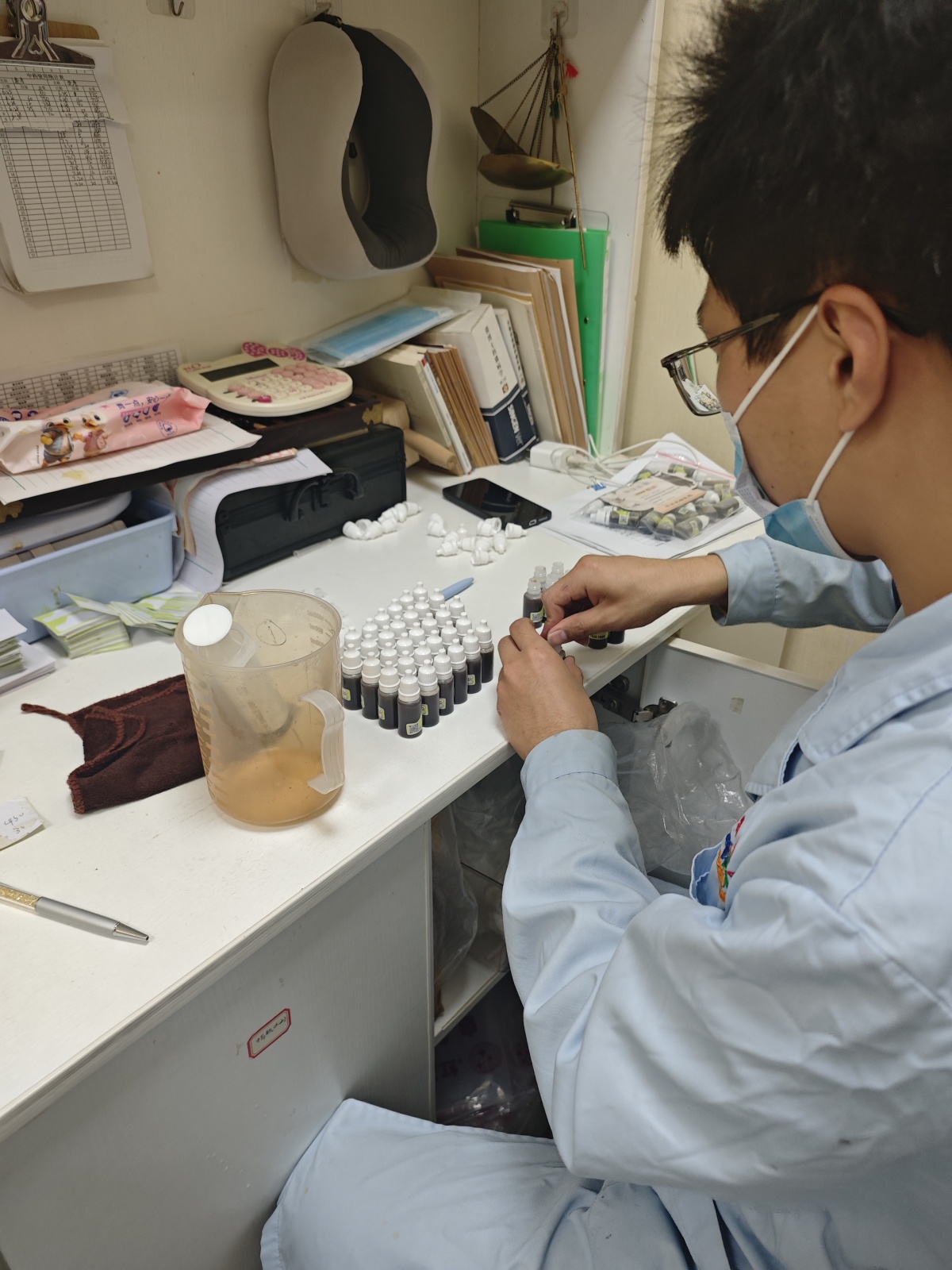 (制好的中药按照每次用量,用小瓶子分装好)