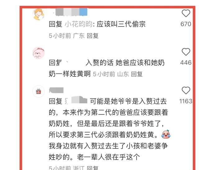其余还有人觉得她的父母是为了弟弟着想,才会让女儿用黄姓。