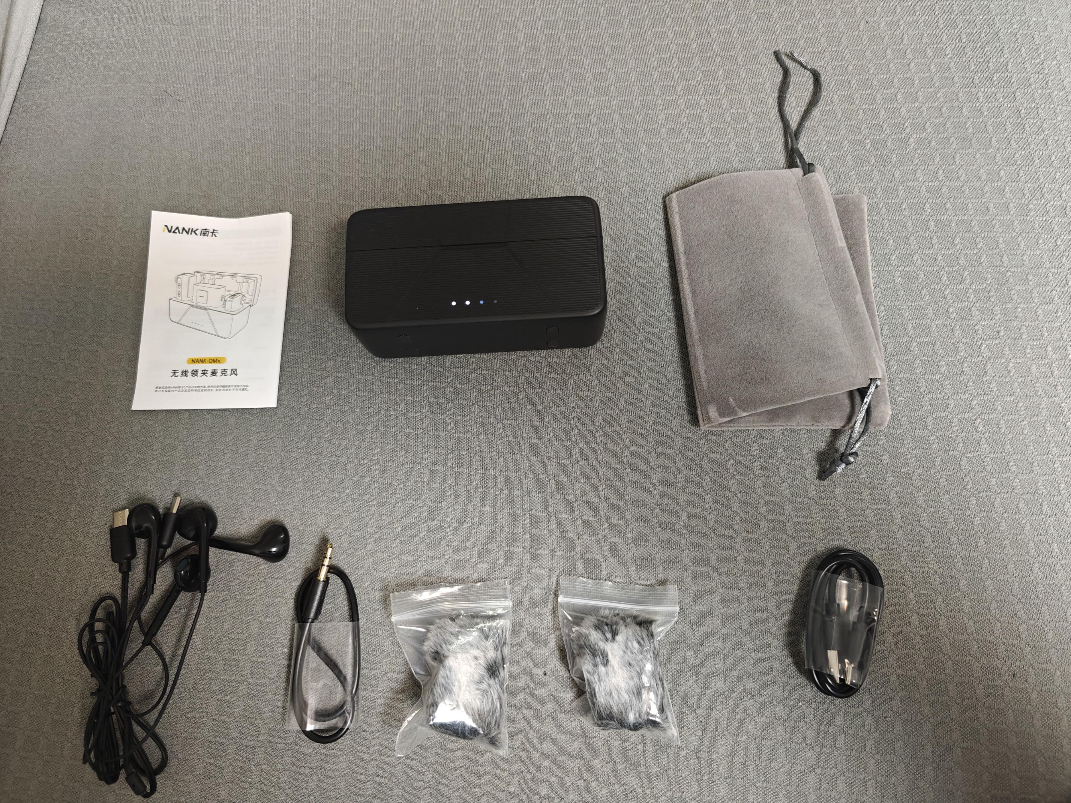拿到南卡Qmic领夹麦克风的第一感觉就是,这包装也太精致了吧!打开包装盒,里面的配件丰富得让我惊喜不已。两个小巧玲珑的麦克风、发射器、充电盒,还有各种转接头,不管是苹果手机还是安卓手机,都能轻松适配。两副Type - C接口的耳机能让主播实现耳返功能,实时监听自己的声音,就像给自己装了一个声音监控器。那根3.5厘米音频连接线能让接收器连接家用音响、单反相机等设备,再加上毛绒防风罩和收纳袋,真正做到了一站式服务,不用再额外购买配件。